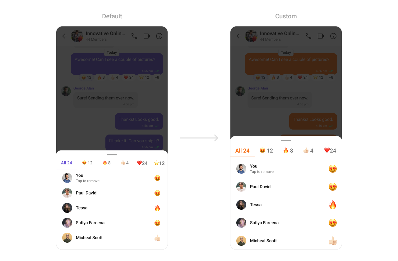 TheCometChatReactionList Component provides a visual representation of emoji reactions on messages. It supports customization for reaction sizes, spacing, and colors, enabling you to build an engaging and personalized messaging environment.