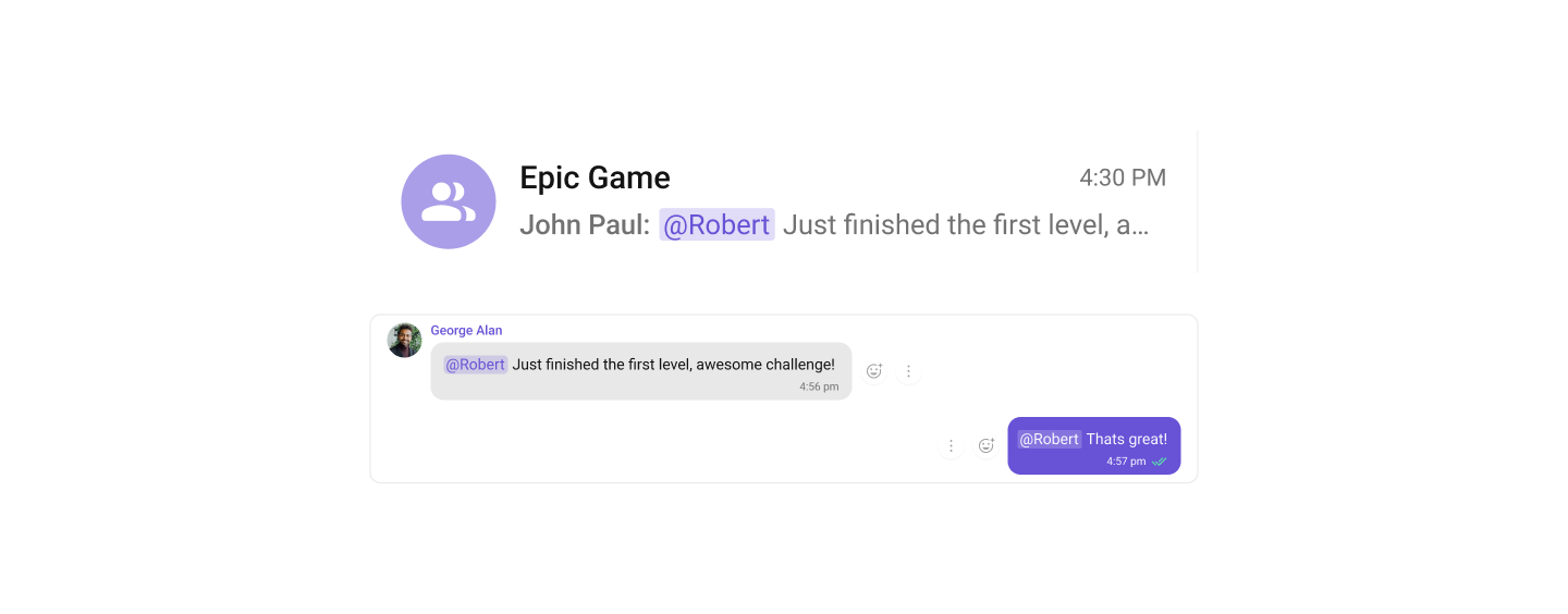 Mentions is a robust feature provided by CometChat that enhances the interactivity and clarity of group or 1-1 chats by allowing users to directly address or refer to specific individuals in a conversation.