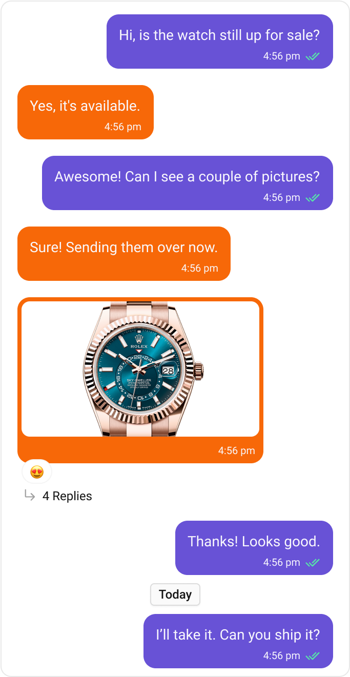 - Image and video bubbles: Customize visual media messages.